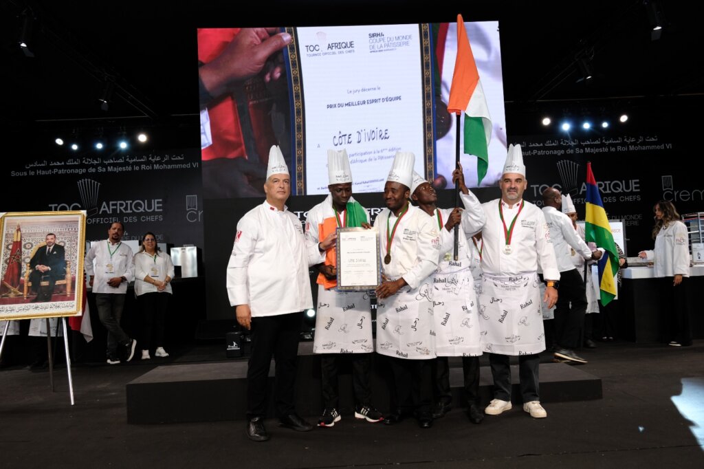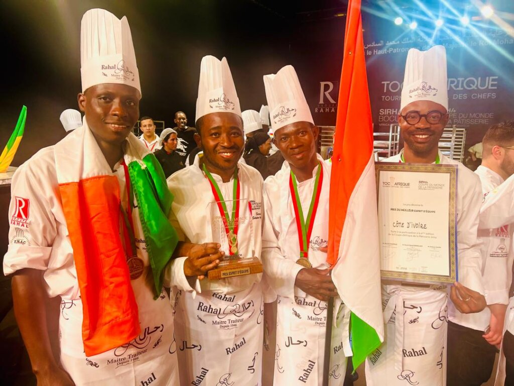 Le Tournoi Officiel des Chefs Afrique (TOC Afrique) 2024, qui a eu lieu du 12 au 13 septembre 2024 à Marrakech (Maroc-Afrique du Nord), a vu la distinction de l’équipe de la Côte d’Ivoire, au niveau des Prix spéciaux, en tant que Meilleure « Esprit d’équipe ».